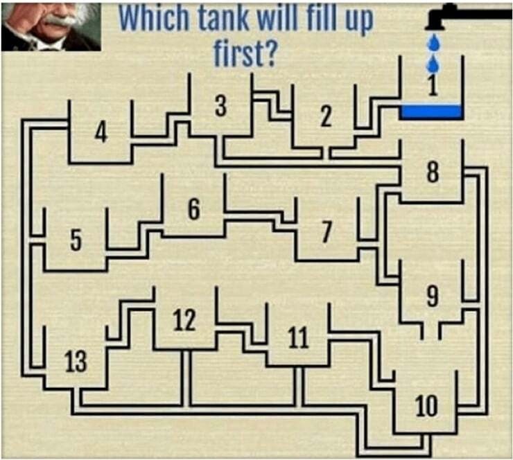 Which tank will fill first 13 tanks puzzle 1 2 3 4 5 6 7 8 9 10 11 12 13 Einstein