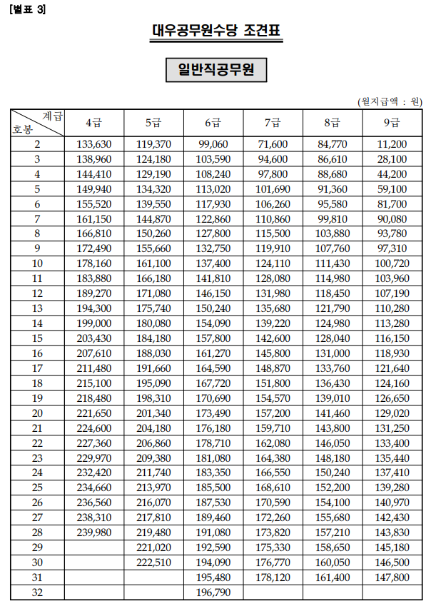- 인사혁신처 ‘공무원 보수규정’ 별표4