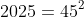 2025는 또 다른 흥미로운 패턴을 포함하고 있습니다. 예를 들어, 이 숫자는 45의 제곱으로 나타낼 수도 있습니다: